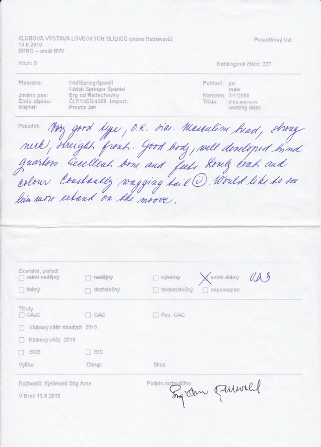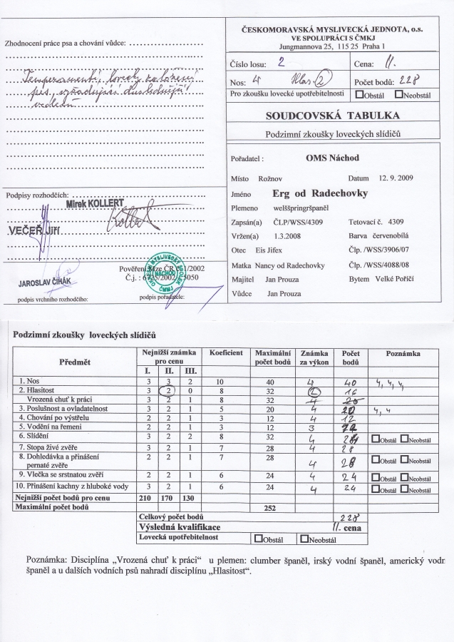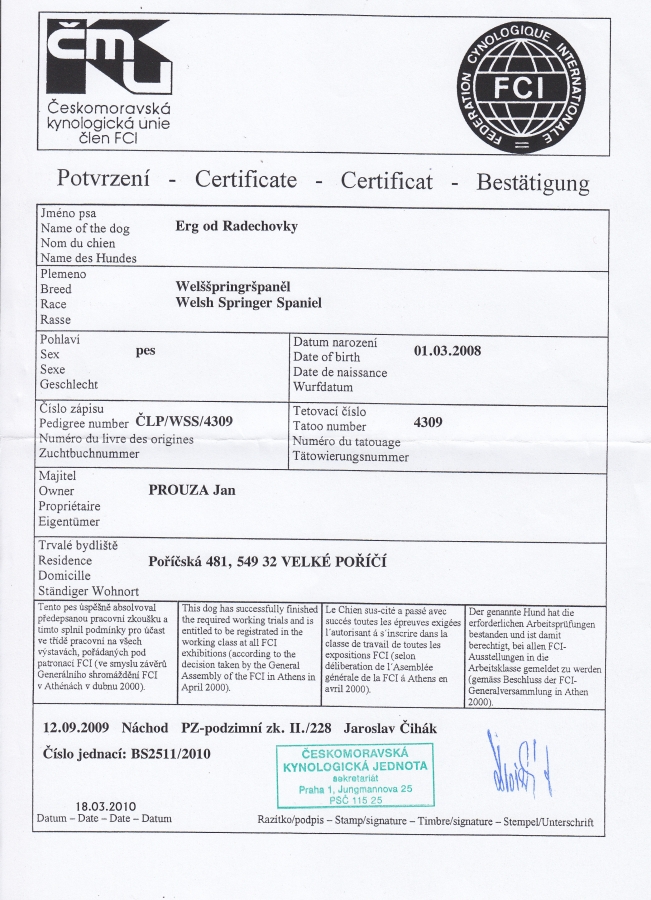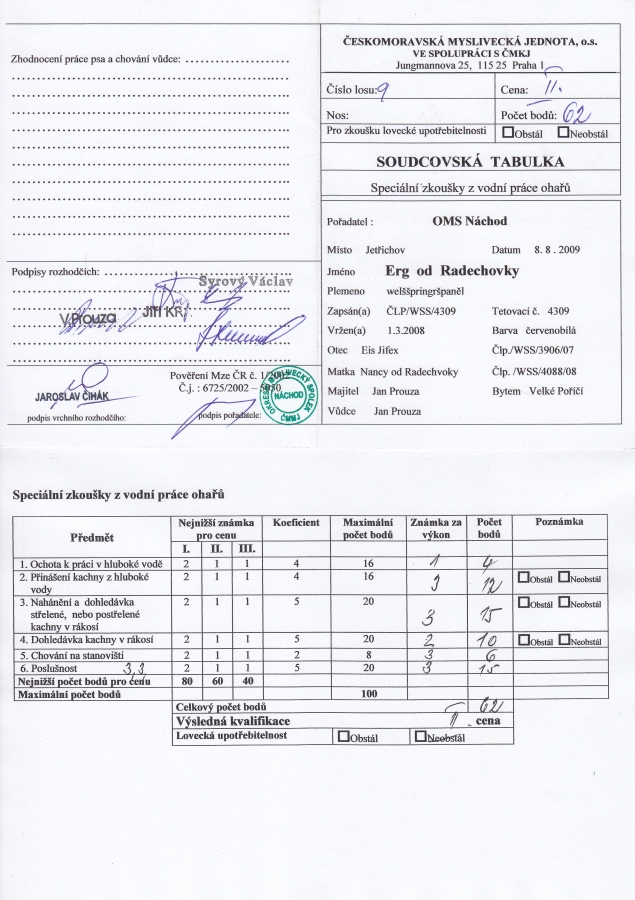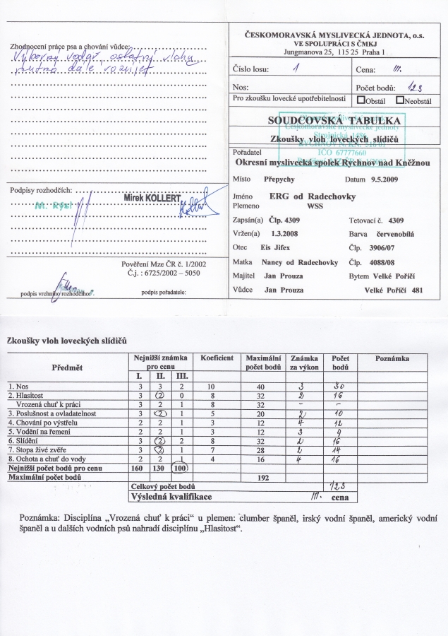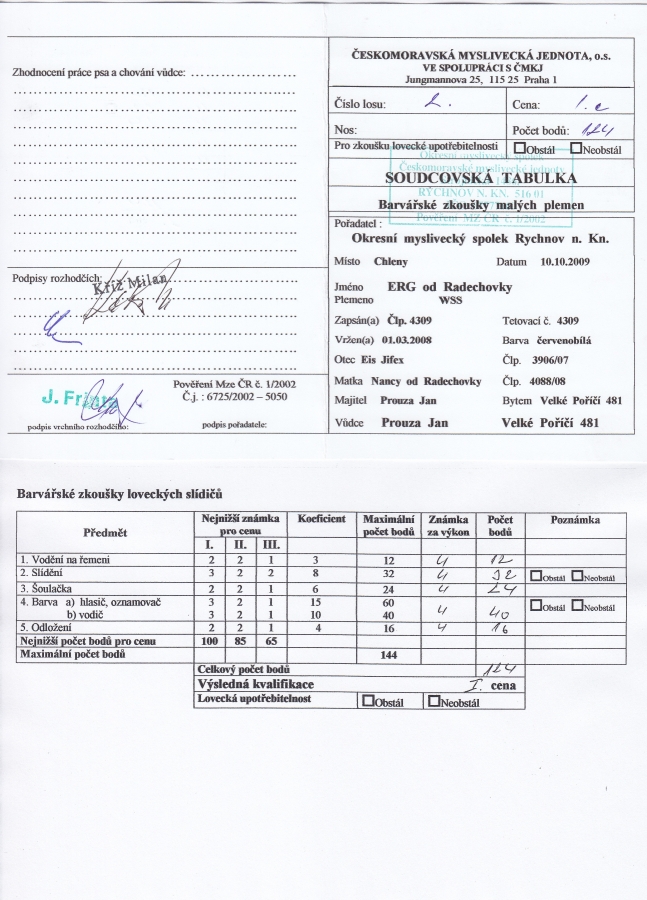 Erg od Radechovky - Zkoušky lovecké upotřebitelnosti, výstavy, uchovnění.:Osobní stránka na adrese: honzaprouza.freepage.cz