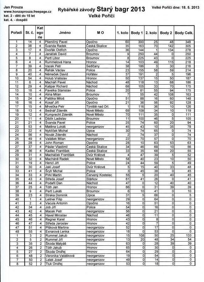 4. ročník rybářských závodů Starý Bagr 2013:Osobní stránka na adrese: honzaprouza.freepage.cz